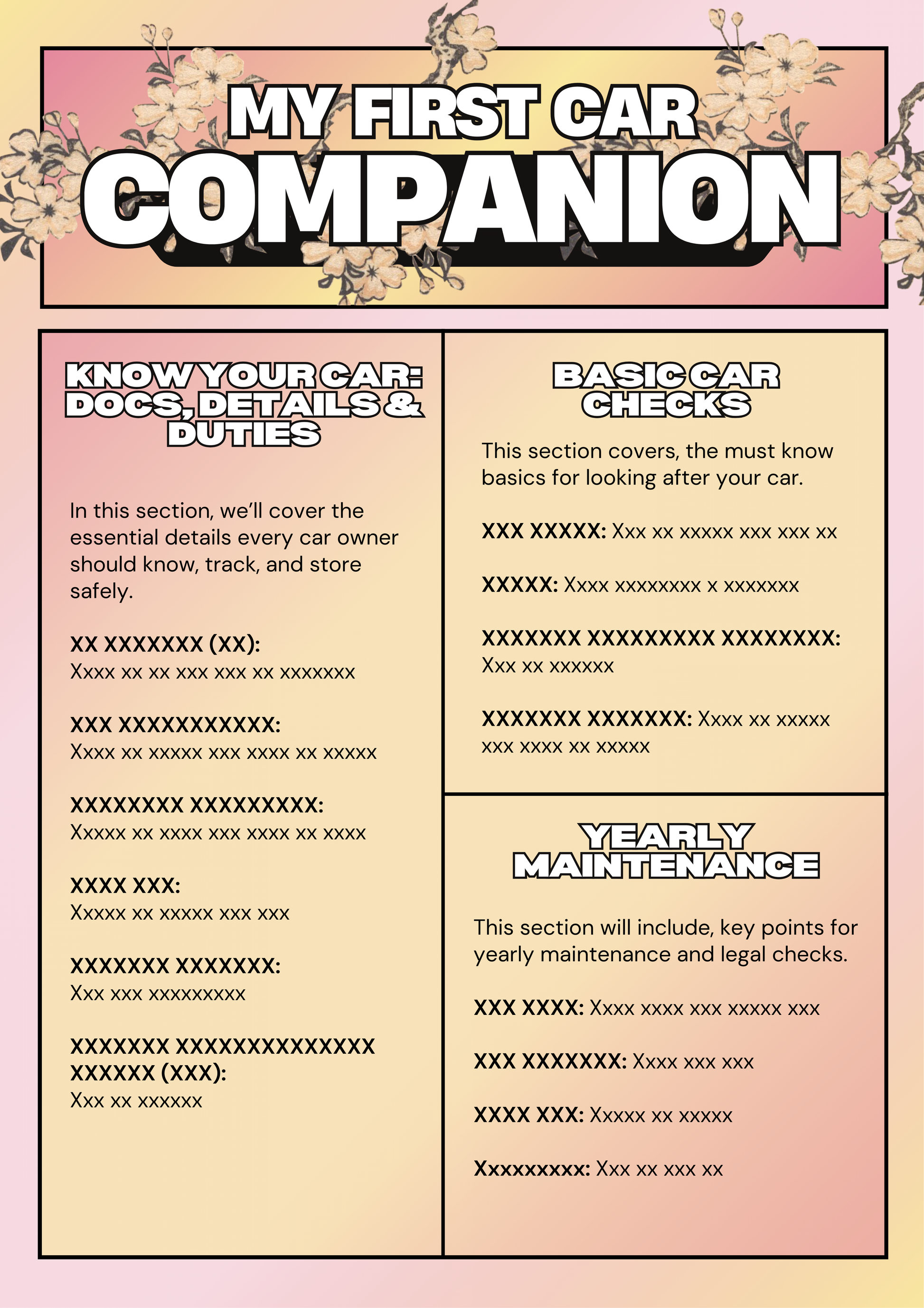 This adorable and useful digital guide is your go-to bestie for car life. Itβs designed to keep you organised, confident, and totally in control from day one. With its soft pink style and easy to follow tips, the Pink Edition makes car ownership feel fun, fresh, and fabulously you.
