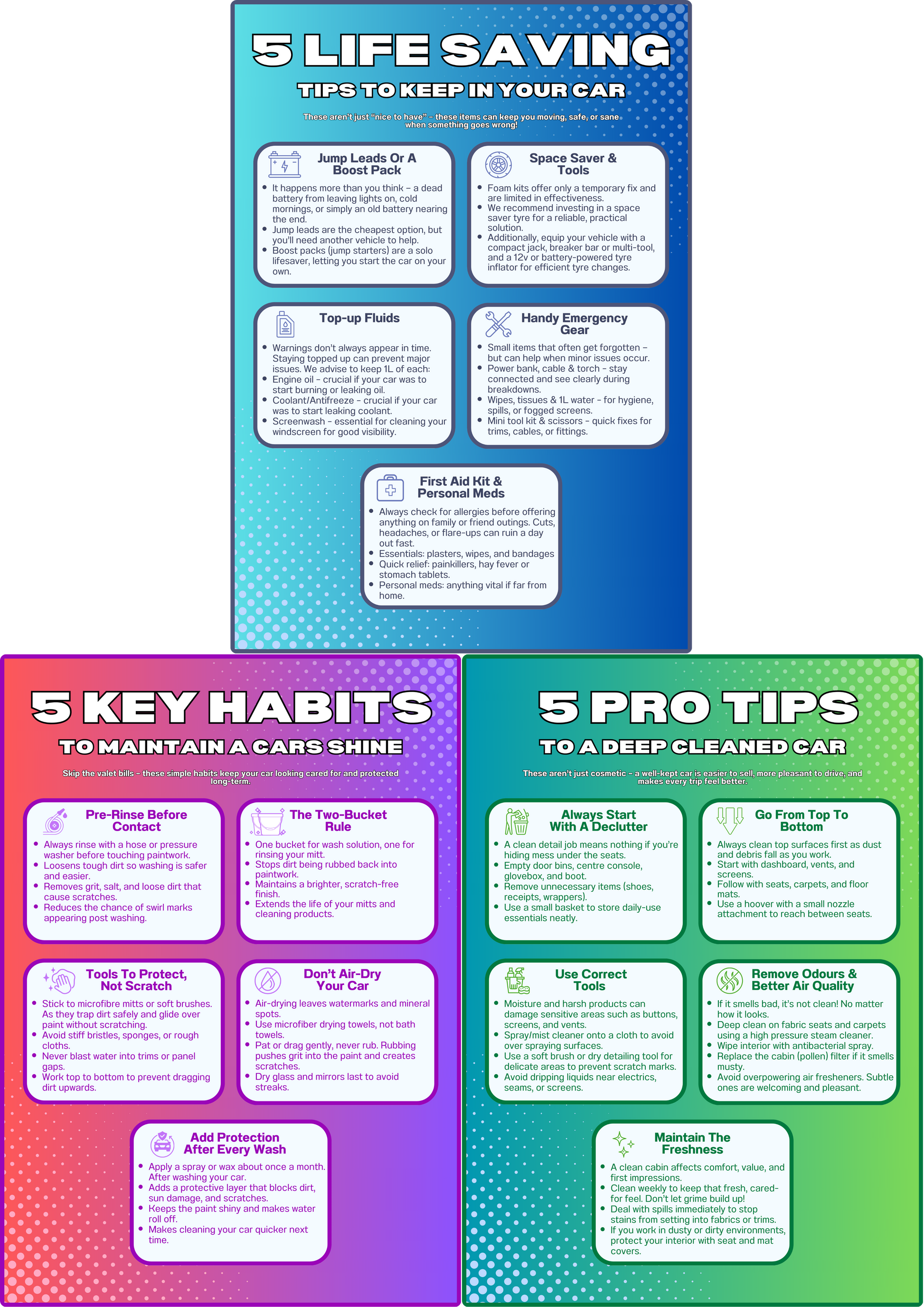A 3-in-1 bundle designed to help you care for your car with ease. It includes: